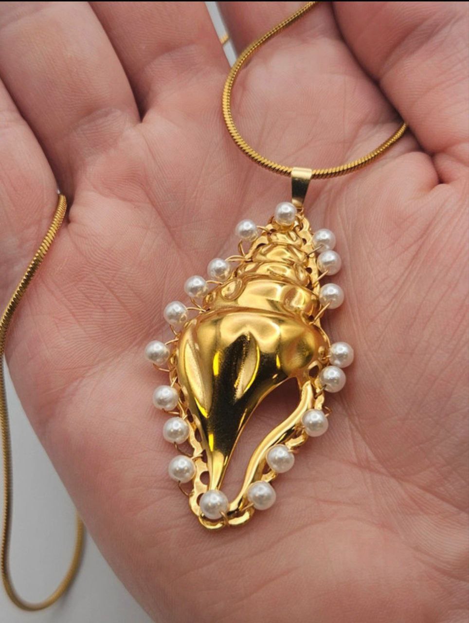 Stainless steel large shell charm necklace